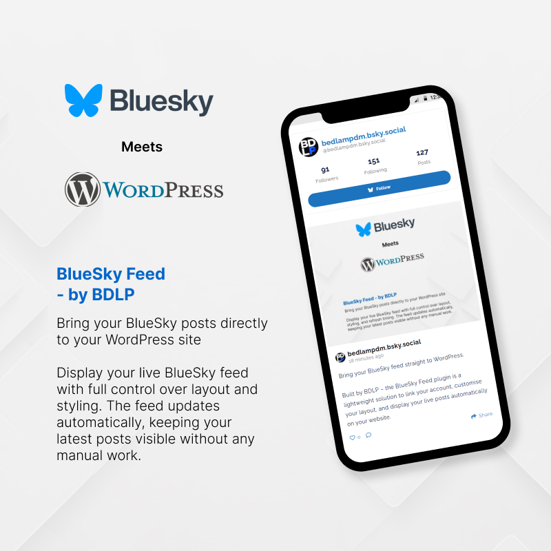 The BlueSky Feed plugin lets you display your live BlueSky posts anywhere on your site with full control over layout, design, and update frequency.